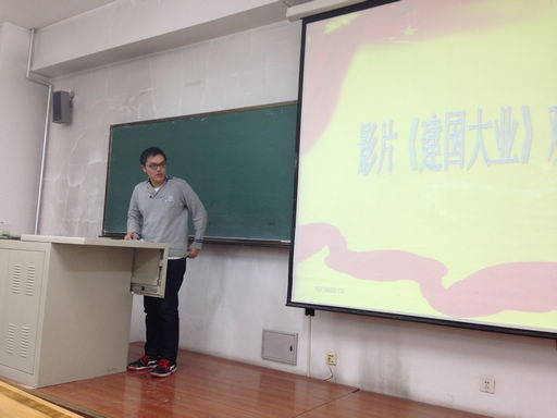 2小时的电影结束,在主持人的建议下,全体学员齐声唱起了国歌。接下来,主持人请了7位学员代表上台和同学们交流自己的观后感。王耀彬同学从电影的历史背景角度谈了谈自己的看法,述说了前辈领导人们为新中国事业前仆后继的事迹,以及自己对未来的展望。哈布尔、童衍辰、廖奕凯三位同学表示对电影本身的细节内容影响深刻,特别是毛主席的话,深刻地反映了前辈们的治国思想。赵夫凡、刘晶晶、季黎明三位同学则结合自身的学习体会经历,阐述了自己对这部电影的看法,他们观点的共同点在于对共产党和国民党的治国思想做了一定的分析和比较,阐述了为何国民党会覆灭,共产党则经历历史考验,逐渐成熟壮大。