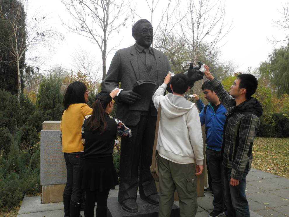 首先,彭博同学向全体同学简单介绍了马祖光院士的生平事迹,号召同学们传承马祖光精神,不论在任何时候、在任何岗位上都应该争做先锋和表率,勇挑重担,百折不回,克勤克俭,无私奉献。接下来,同学们对马祖光院士的雕像进行了清理。长期的风沙已让马祖光院士的雕像布满灰尘,同学们轻轻的擦去雕像的浮灰,并清理雕像旁的纪念碑。程曦同学说,马祖光院士是哈工大的骄傲、祖国的骄傲、中华民族的骄傲!作为学生,我们在今后的学习中将继续他未完成的事业,弘扬哈工大精神,为学校的发展建设做出自己的贡献!许嘉毓同学说,今天祭拜马祖光院士雕像,我再次接受了心灵的洗礼。我们今后要像马祖光院士一样,经受得住政治、事业、名利和生活上的多重考验,为共青团、学校乃至国家事业的发展贡献力量!
