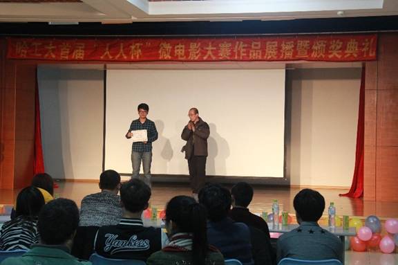 团委、市政黑人av团委与航天黑人av青年媒体中心共同倾心举办的哈工大 “人人杯”首届微电影大赛终于迎来了最后的评审和展示活动——微电影大赛颁奖晚会。在活动现场,主办方邀请到了哈工大数字媒体艺术系的老师,校电视台的老师,黑龙江生活报,新晚报的记者担任评委。