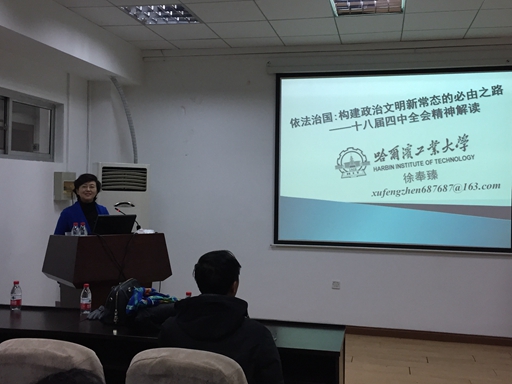 经过徐教授的精心讲解,全院教工党员深刻认识到了,中国共产党十八届四中全会的《决定》,是依法治国的里程碑,是依法治国的升级版,不仅开启了中国法治建设的新时代,而且体现了中国共产党人在依法治国方面理念的飞跃、认识的飞跃、实践的飞跃。