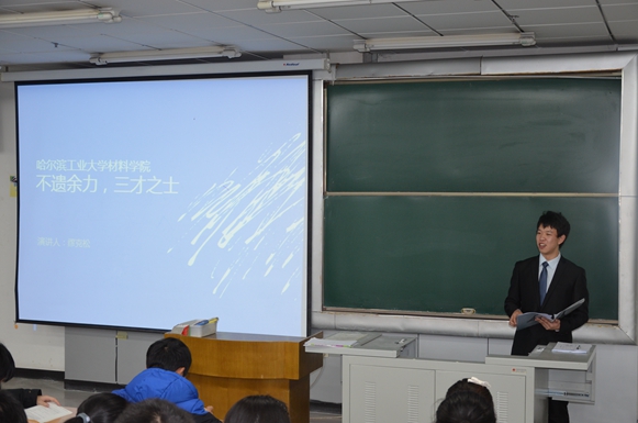 在本次先进事迹报告会中,13级本科生魏绍楼首先发言,向大一新生们介绍了自己大一时期的学习生活经历与感悟,最为切实的给予了新生们建议;来自研究生支教团硕士学长甘利兵,生动地讲述了自己在一年云南宁蒗支教生涯中的所见所闻,为大一新生们开启了一扇展望更远方向的窗户;科研标兵,2014全国大学生新材料创新设计大赛特等奖得主蔡松婷上台为大家讲述了自己在科研道路上前行经验,为新生们树立灯塔,指明了前行的方向;“气冲霄焊,知行合一”,12级本科焊接一班班长王树良报告了一个优秀班集体班风学风的重要性以及如何建设一个富有凝聚力的优秀班集体;院学生团委副书记缪克松以打造”三才之士“为出发点阐述了如何在学习与工作中抓住平衡点,全面成才,从学生工作角度为新生们展示了另一个学习生活平台。