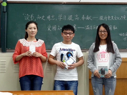 历史和研究生教育政策方面的题型。最终,丁海昌、柳欢和宫雪分别获得了此次爱国主义知识竞赛的一二三等奖。