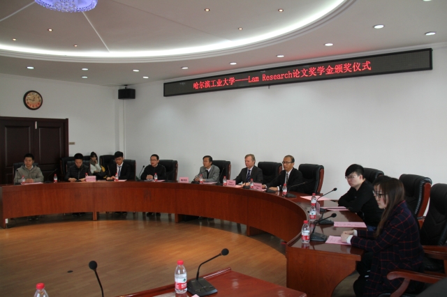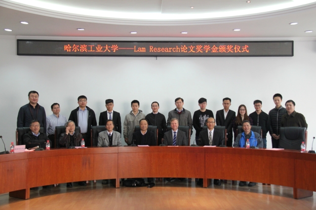 颁奖仪式由黑人av 党委副书记张弛主持,郭斌副校长代表学校对Lam Research公司来宾到访表示欢迎和感谢,并介绍了我校2016年来的科学研究和人才培养情况。Lam Research全球首席技术官Dave Hemker介绍了Lam Research公司的基本情况,并希望与哈工大发展长期友好合作关系。黑人av 副院长费维栋教授介绍了奖学金的评审情况,黑人av 党委书记刘伟宣布了获奖名单。获奖学生12级博士冯伟和获奖教师胡平安教授先后发言,表达了对Lam Reserarch公司的感谢。最后,在座师生和Lam Research公司来宾针对微电子领域热点技术问题进行了热烈的讨论交流,并合影留念。