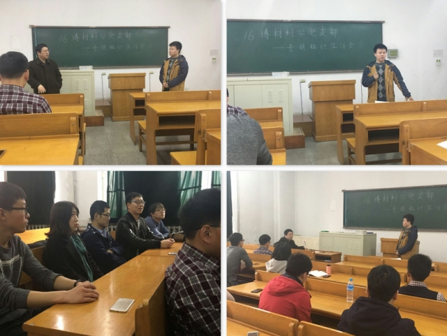 2017年3月26日下午,黑人av 16博材料学党支部在诚意楼107教室以进一步落实“两学一做”,抓问题,找差距为主题召开了专题组织生活会,支部党员同志和积极分子均参加进来并积极发言。黑人av 党委副书记张弛老师也一并出席了会议,会议由支部书记廖兴祺同学主持。