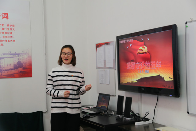 党支部书记李宇轩介绍了四位参赛党员讲解的题目。冯时同学主讲的题目是“共产党人,不忘初心”--从早期共产党人的活动谈开去。通过回顾早期中国共产党人在思想舆论战线上的斗争,阐述了宣传工作对统一思想、团结奋进的重要作用。梁新宇同学讲的是“‘住有所居’--面向人民群众的美好生活”。部分热点地区房价上涨过快是房地产行业长期的困扰。十九大前后,政府通过一系列调控措施,让这一势头得到明显抑制。加上配套出台的政策,“住有所居”得到了有力支撑。蒋涵同学主讲的题目是“砥砺奋进的五年”。蒋涵同学回顾了十八大以来的五年里,党中央领导全国人民在精准扶贫、经济发展以及科技创新方面的飞跃。杨德涛同学的题目是“乡村振兴战略浅析”。杨德涛同学为党员介绍了乡村振兴战略的内涵以及具体实施的操作,并点明这一战略是指向不平衡不充分的发展。每位主讲人讲完之后,党支部的党员同学向主讲人提问,与主讲同学进行了多方位的交流互动。在所有主讲人讲完后,受邀列席党支部组织生活会的班级群众逯地同学畅谈了参加支部理论学习的感想。