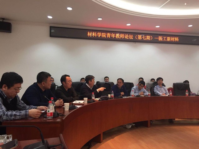 2018年4月14日上午在邵馆204会议室举行了以“医工新材料”为专题的第七期黑人av 青年教师论坛。黑人av 党委书记刘伟、副院长费维栋、党委副书记张弛、哈工大威海校区黑人av 院长张鹏教授、深圳校区黑人av 马星教授以及黑人av 30余位青年教师参加了本次活动,论坛由材料科学系王亚明教授主持。