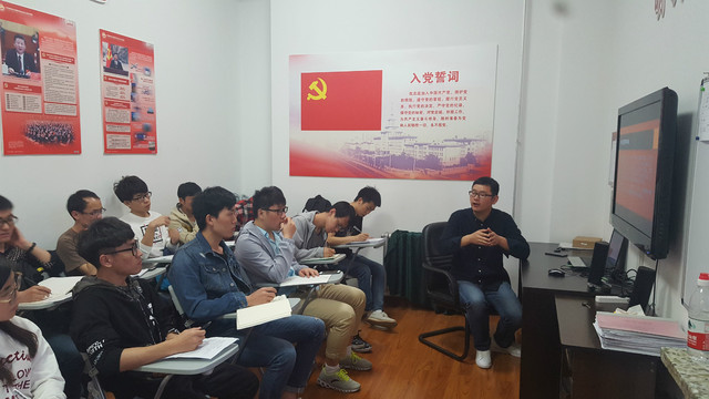 2018年4月25日晚,17硕铸造党支部在材料楼党员之家开展以主“中美贸易摩擦--洞悉中国高端制造业发展”为内容的主题讨论。支部全体党员同志和支部积极分子参加会议,会议由支部纪律委员郑壮壮同志主持。