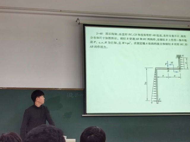 11月15日晚,在正心楼106和117教室,材成专业李喆同学和焊接专业李敬轩同学分别为同学们带来了理论力学B和理论力学C的总结分享。通过前期与老师和同学们进行沟通,两位同学利用课余时间准备了详细的复习资料,课程也得到了同学们的积极响应,不少同学早早地就来到教室开始复习相关内容。