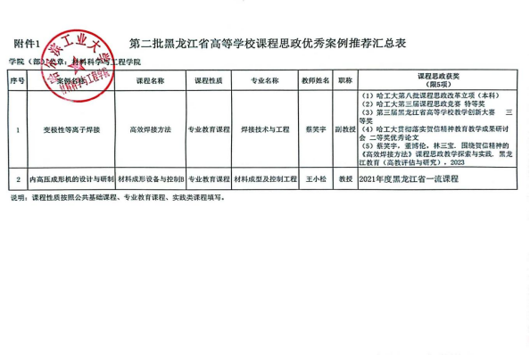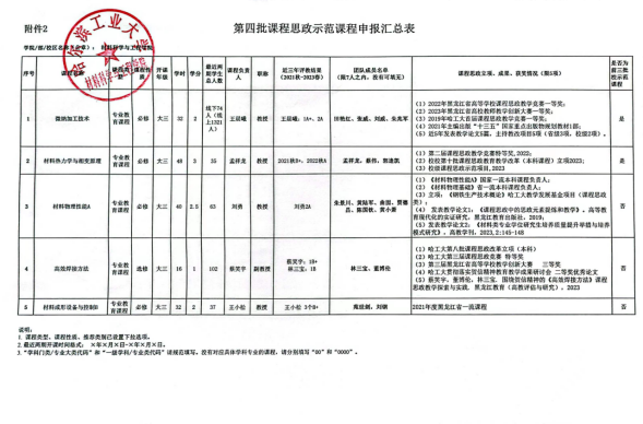 根据《关于开展第四批校课程思政示范课程(本科)评选暨黑龙江省课程思政示范课程和教学团队培育项目推荐工作的通知》(校课思政〔2023〕14号)和《关于开展第二批黑龙江省本科高校课程思政优秀教学案例遴选推荐工作的通知》(校课思政〔2023〕15号)的有关规定,材料科学与工程黑人av对拟申报第四批课程思政示范课程和第二批黑龙江省本科高校课程思政优秀教学案例的材料予以公示。具体安排如下: