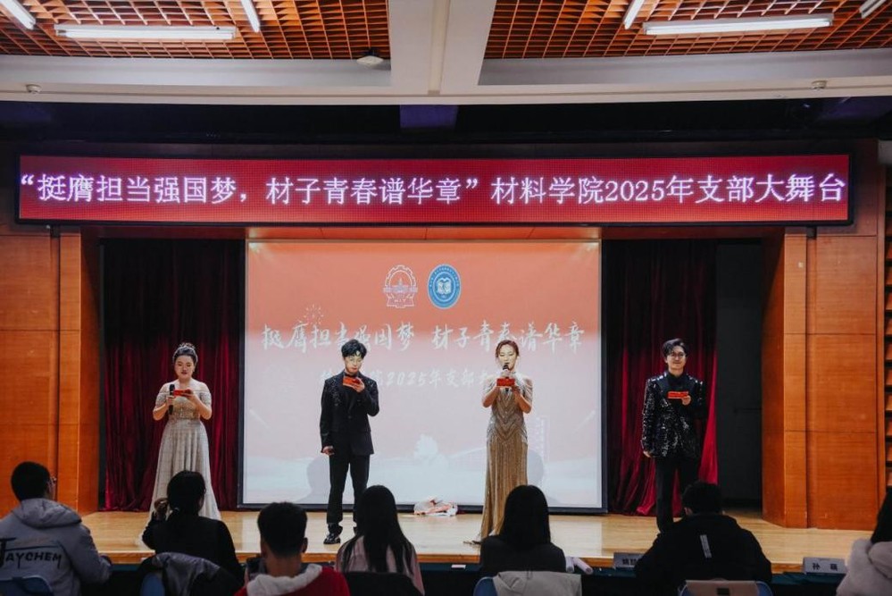 本次支部大舞台紧扣“青春”“家国”“未来”三大核心,以“青春启航,韶华如歌”“家国情怀,心之所向”“共创未来,明天更好”三个篇章层层递进,融合合唱、舞蹈、创意串烧、乐器演奏、诗歌朗诵等多元文艺形式,13个节目轮番登场,既展现了材子们的多才多艺,更诠释了“规格严格、功夫到家”的校训传承与“材料报国”的青春追求。