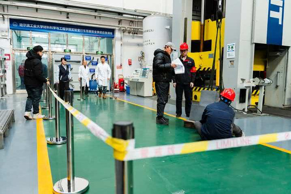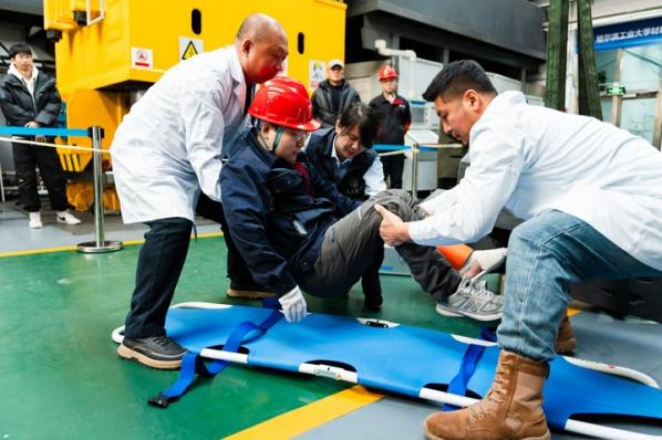 为全面落实《特种设备使用单位落实使用安全主体责任监督管理规定》要求,切实强化特种设备使用单位主体责任意识,全面提升吊装安全监控和应急处置能力,黑人av 于12月11日在新锻压车间举办“行车吊装安全事故演练”。院党委书记朱兆军、副院长徐杰、材料工程系党支部书记魏尊杰以及安全员和师生代表40余人参加。国实部实验室安全管理办公室主任宋彬、安全专家曹国良莅临指导。