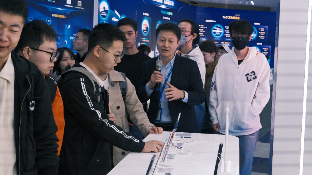 展厅内,工作人员围绕中兴通讯在通信领域的行业地位展开介绍,重点讲解了企业在算力领域的核心成果及在芯片研发、终端创新、网络建设等方面的突破,让实践团成员直观感受了通信技术对生产生活的深刻变革与赋能作用。